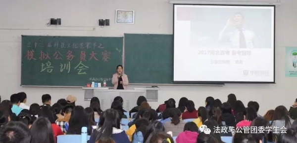 致力于双阵地建设,紧抓课堂学习第一阵地,开辟实践拓展第二阵地。模拟公务员考试系列活动的开展是提升学生综合素质的有力实践,以“公心·服务·成长”为宗旨,增进学生对于公务员考试的认知平台,引导学生关注就业发展动向,明晰职业规划,洞察社会需求,从而发现不足,不断提高自身综合素质。